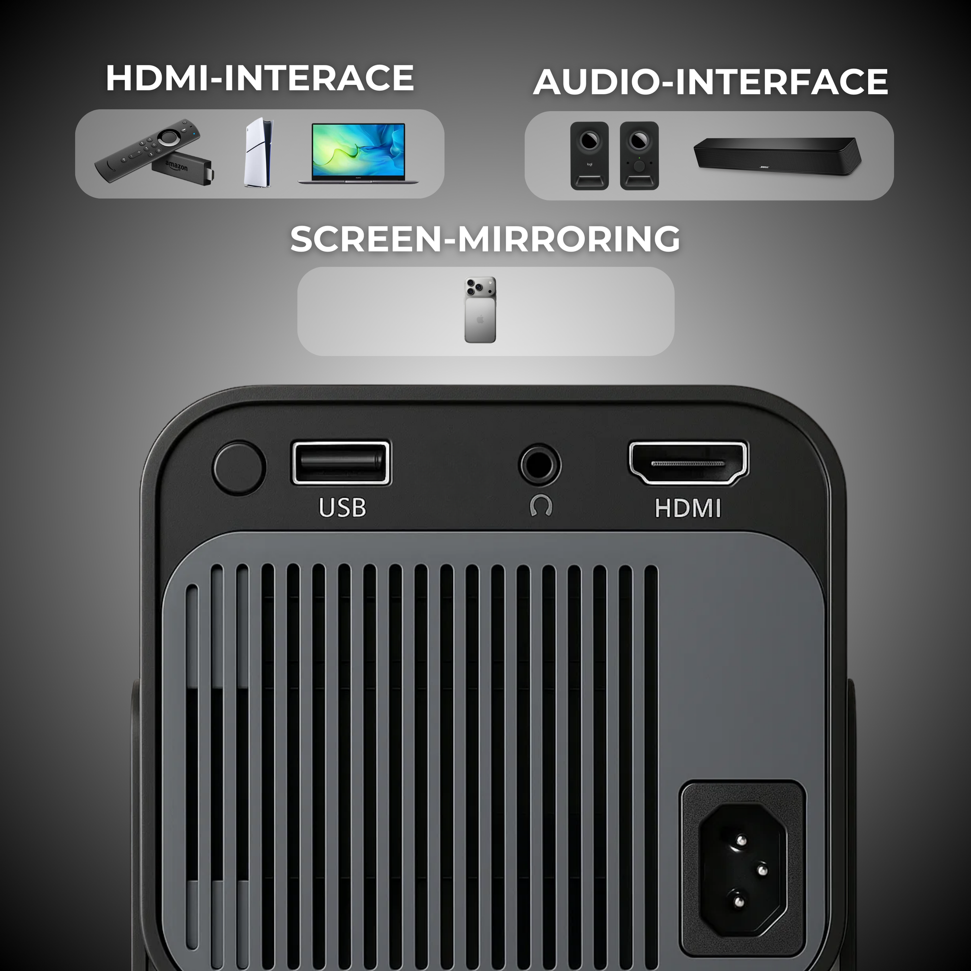 Der KinoBuddy® ist nicht nur ein Projektor, sondern ein flexibles Entertainment-Werkzeug. Mit seiner 180°-Verstellbarkeit kannst du die Projektion ganz nach deinem Belieben anpassen. Projiziere an Wände, Decken oder sogar im Freien - schaffe dein eigenes Kinoerlebnis, egal wo du bist. Die Anpassungsfähigkeit macht ihn zur idealen Lösung für jede Szene und jeden Raum, ob drinnen oder draussen.
