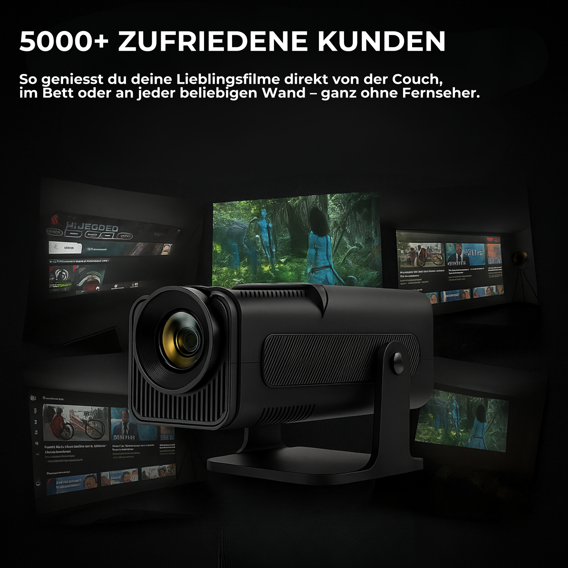 Du wirst nie wieder einen Fernseher vermissen, denn der KinoBuddy® bietet alles, was du brauchst. Die integrierten Streaming-Dienste, die Vielseitigkeit der Geräteverbindung und die Projektionsmöglichkeit auf bis zu 150 Zoll machen den KinoBuddy® zur Komplettlösung für dein Entertainment. Sag deinem alten Fernseher Lebewohl und tauche ein in eine neue Ära des Heimkinos.