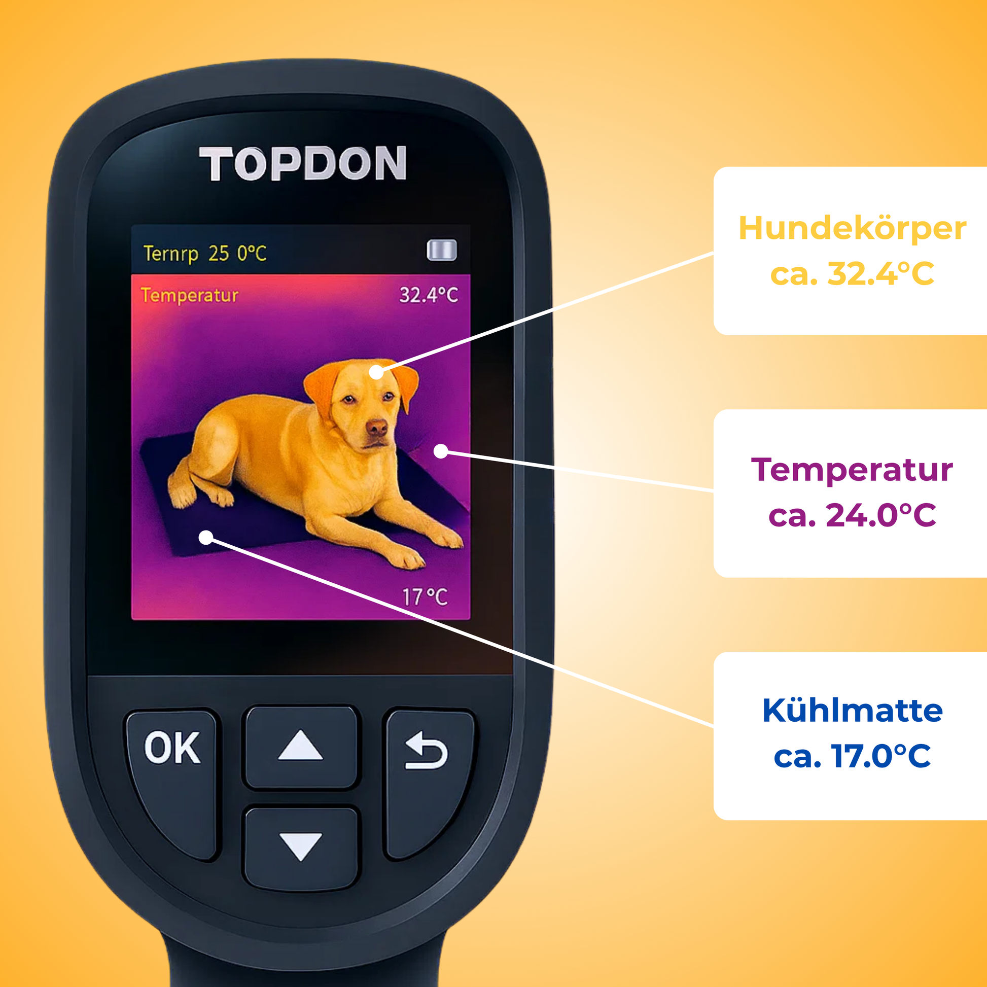 An heissen Tagen suchen Hunde verzweifelt nach einem kühlen Rückzugsort, doch oft bleibt nur der kalte Fliesenboden. Mit Pfotenfrost bekommt dein Vierbeiner endlich einen sanft gekühlten Ruheplatz, ganz gleich, wo er sich befindet. Die selbstkühlende Ice-Silk-Oberfläche nimmt Körperwärme effektiv auf, während das atmungsaktive Mesh-Gewebeeine angenehme Luftzirkulation ermöglicht. Kein Wasser, kein Strom, kein Vorkühlen – einfach ausbreiten und wohlfühlen lassen!